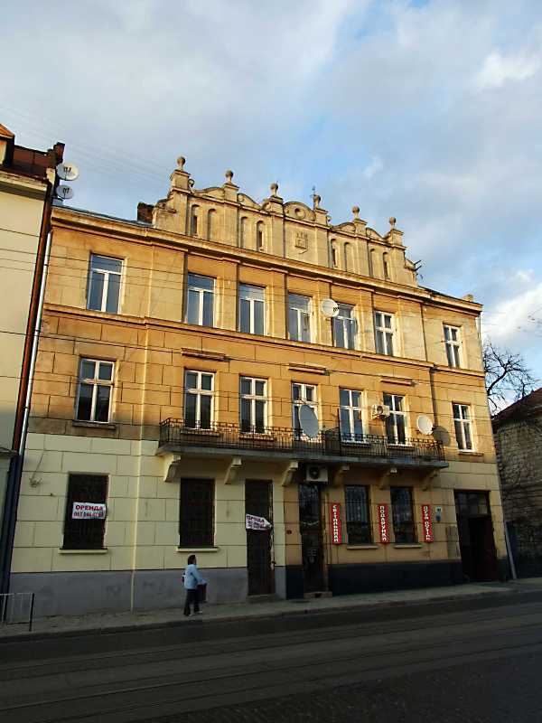 Житловий будинок (№ 101) Розмір зображення: 600:800 піксел 4 квітня 2012 р. Фото М.І.Жарких. Вкладені елементи 2012 р. Фронтон з геробм Львова