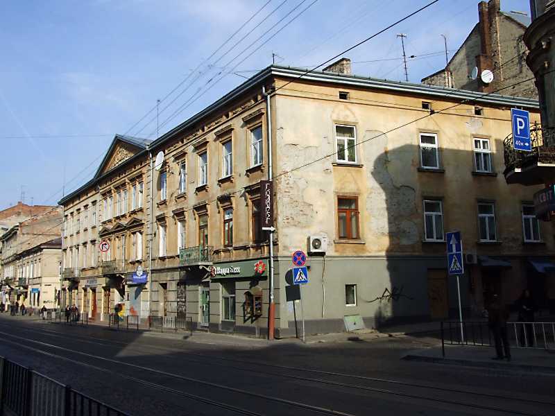 2012 р. Загальний виглядРозмір зображення: 800:600 піксел 4 квітня 2012 р. Фото М.І.Жарких. Ліворуч – вул. Личаківська, праворуч – вул. Смольського. |