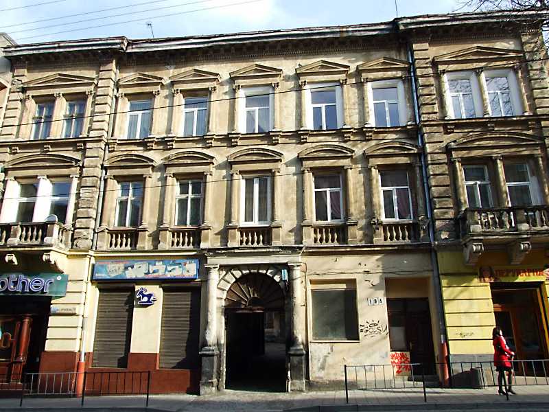 2012 р. Головний фасад Розмір зображення: 800:600 піксел 4 квітня 2012 р. Фото М.І.Жарких. Вкладені елементи Вікно 2-го поверху Балкон 2-го поверху Вхід