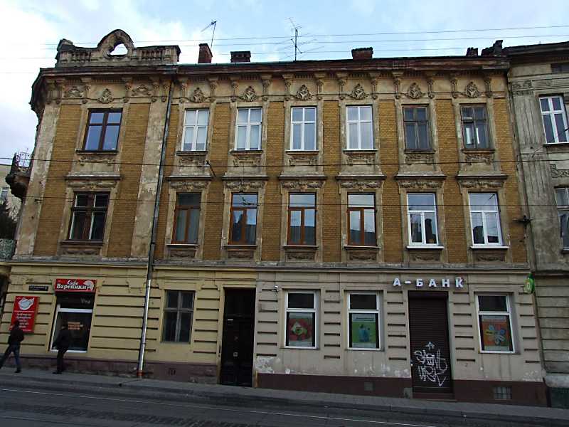 2012 р. Фасад по вул. Личаківській Розмір зображення: 800:600 піксел 4 квітня 2012 р. Фото М.І.Жарких. Вкладені елементи Вікно 3-го поверху (+) Вікно 2-го поверху (+)