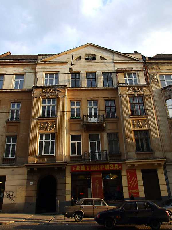 2012 р. Головний фасад Розмір зображення: 600:800 піксел 4 квітня 2012 р. Фото М.І.Жарких. Вкладені елементи Рельєфна композиція 1 Рельєфна композиція 2 Рельєфна композиція 3