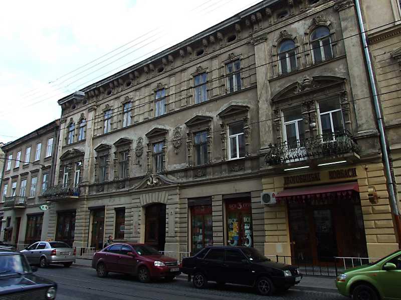 Прибутковий будинок (вул.Личаківська, 4) споруджено в 1888 р. (архіт. Я.Карасинський) у стилі італійської архітектури 17 ст.
