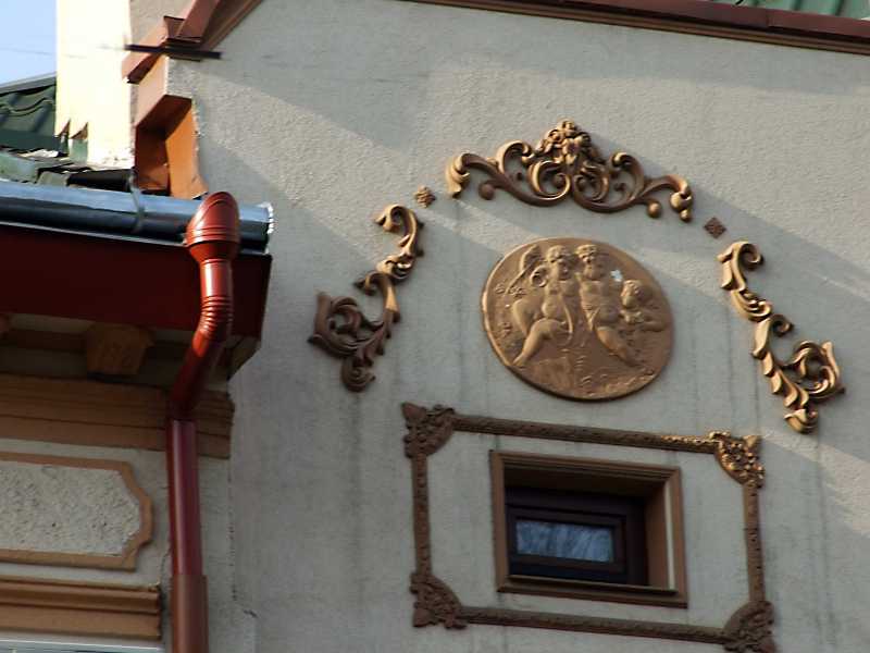 Рельєфні прикраси фасаду Розмір зображення: 800:600 піксел 4 квітня 2012 р. Фото М.І.Жарких. Вище | Наступна сторінка