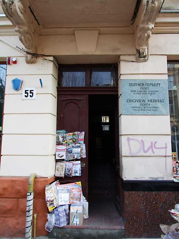 Вхід Розмір зображення: 600:800 піксел 4 квітня 2012 р. Фото М.І.Жарких. Вкладені елементи Меморіальна дошка З.Герберту