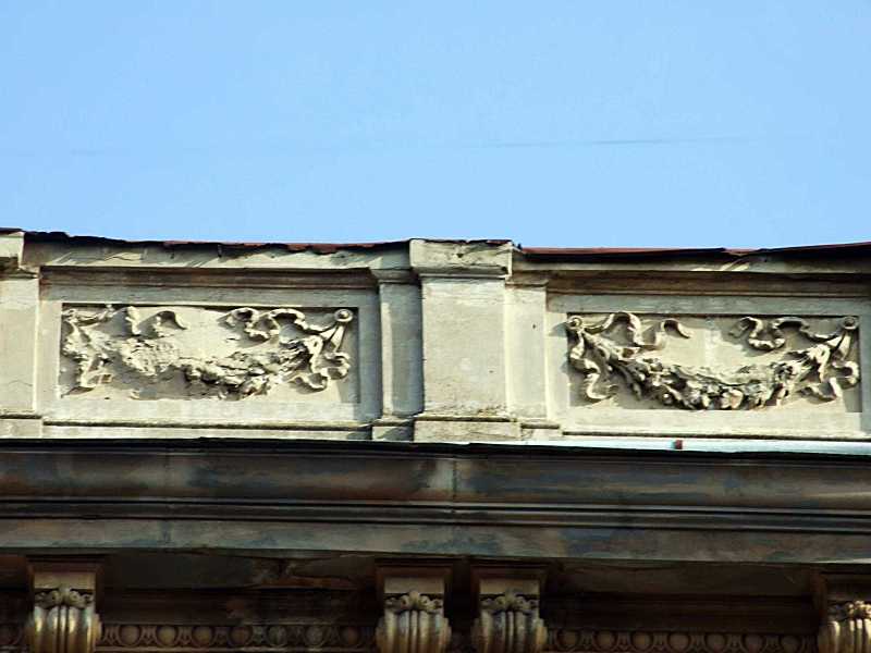 Фронтон з рельєфними вставками Розмір зображення: 800:600 піксел Фото М.І.Жарких, 4 жовтня 2019 р. Вище | Наступна сторінка