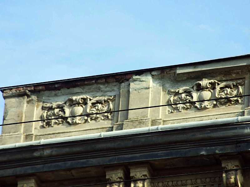 Фронтон з рельєфними вставками Розмір зображення: 800:600 піксел Фото М.І.Жарких, 4 жовтня 2019 р. Вище | Наступна сторінка