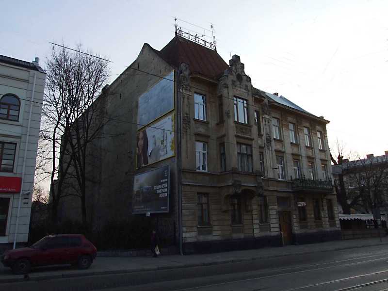 Житловий будинок (№ 70)Розмір зображення: 800:600 піксел 4 квітня 2012 р. Фото М.І.Жарких. Будинок споруджено в 1906 р. для Е.Ріделя фірмою І.Левинського (іловірно, за проектом Т.Обмінського). |