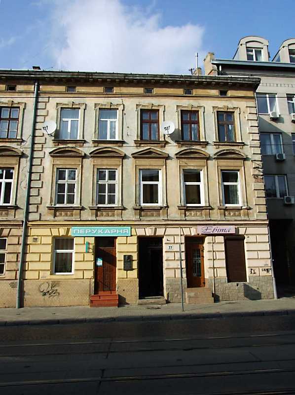 2012 р. Головний фасад Розмір зображення: 598:800 піксел 7 квітня 2012 р. Фото М.І.Жарких. Вкладені елементи Вікно 3-го поверху Вікно 2-го поверху Вікно 2-го поверху Меморіальна дошка В. Лопушанському (+)