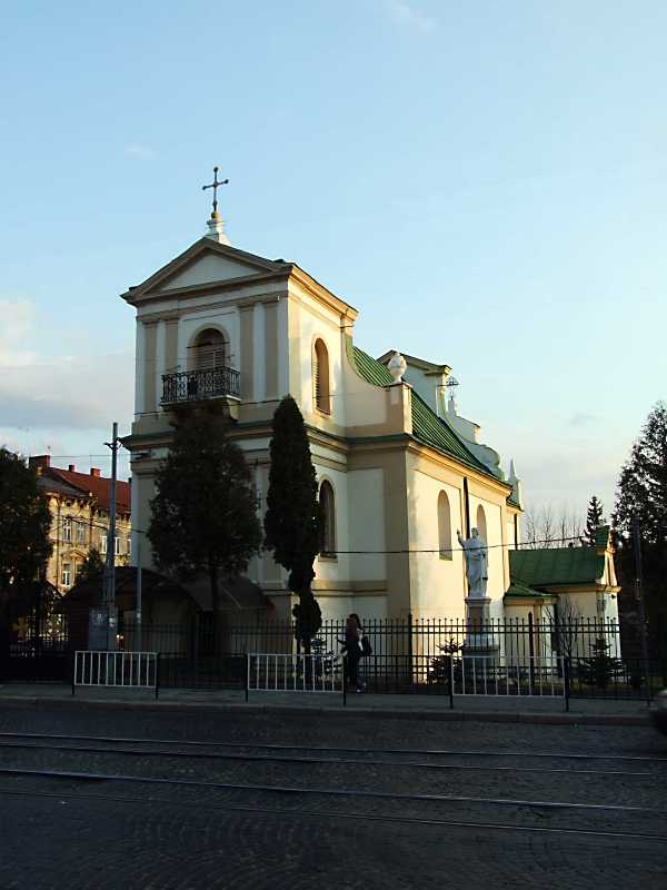 2012 р. Загальний вигляд з позиції С3 Розмір зображення: 600:800 піксел 4 квітня 2012 р. Фото М.І.Жарких. Вкладені елементи Скульптура апостола Петра Скульптура апостола Павла Бічна прибудова