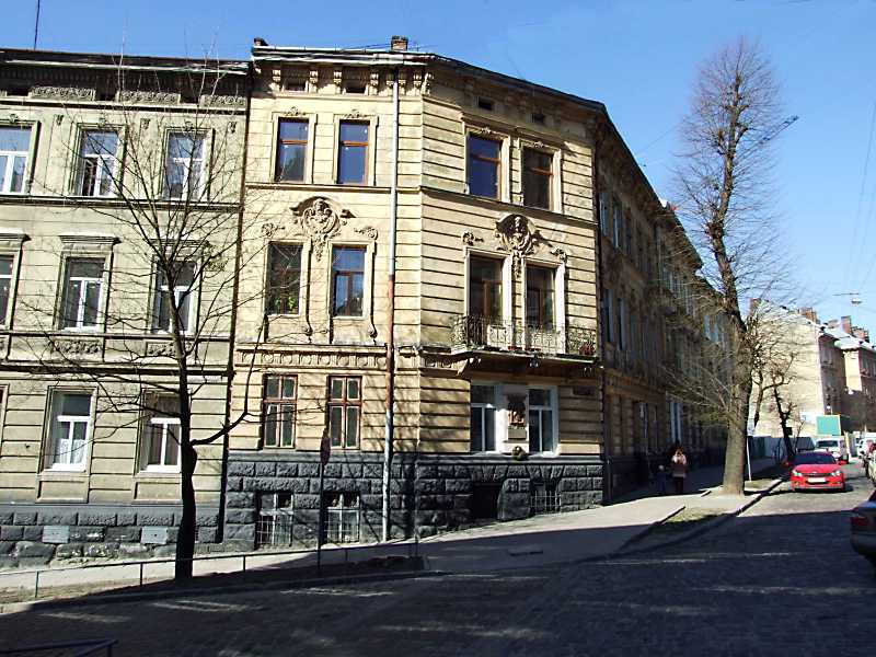 2013 р. Загальний виглядРозмір зображення: 800:600 піксел Ліворуч – вулиця Заньковецької, праворуч – вулиця Лисенка. 18 квітня 2013 р. Фото М.І.Жарких. |