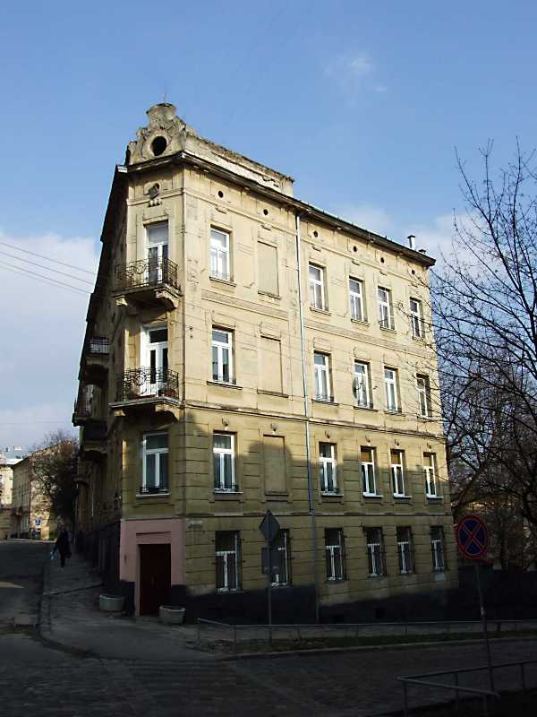 Житловий будинок (№ 28)Розмір зображення: 600:800 піксел 7 квітня 2012 р. Фото М.І.Жарких. Ліворуч – вул. Лисенка, праворуч – вул. Заньковецької. |