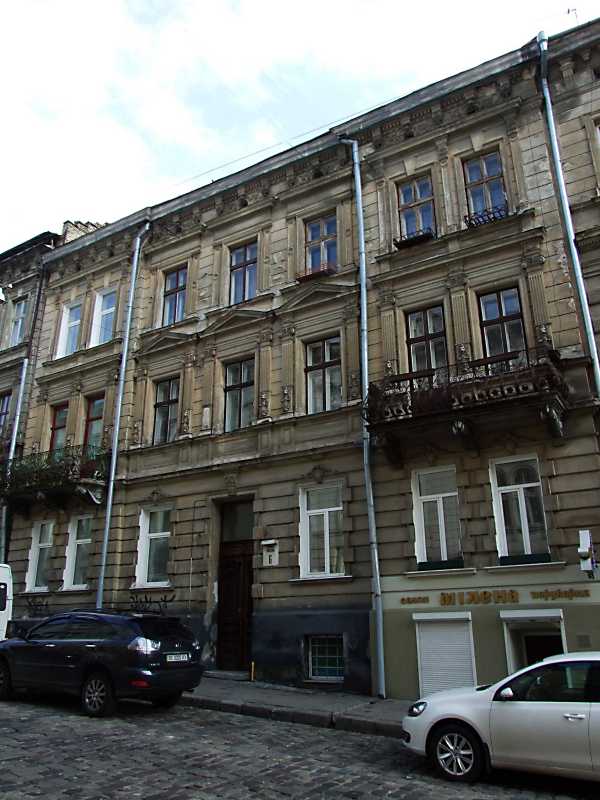 Житловий будинок (№ 6)Розмір зображення: 600:800 піксел 7 квітня 2012 р. Фото М.І.Жарких. Чиншова кам’яниця, споруджена в 1890-х рр. за проетом М.Зильберштайна та А.Голомба. |