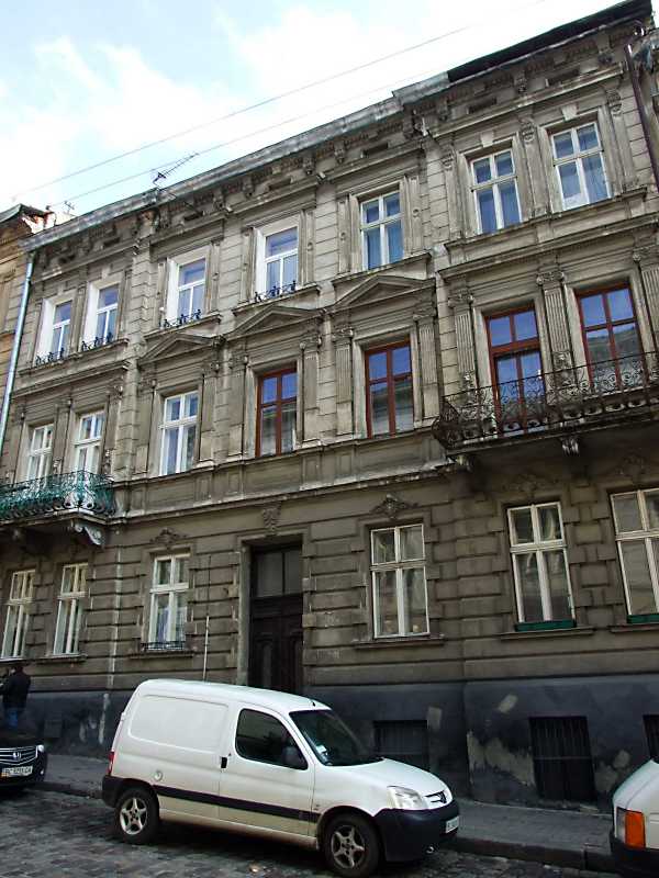 Житловий будинок (№ 8)Розмір зображення: 600:800 піксел 7 квітня 2012 р. Фото М.І.Жарких. Чиншова кам’яниця, споруджена в 1890-х рр. за проетом М.Зильберштайна та А.Голомба. |