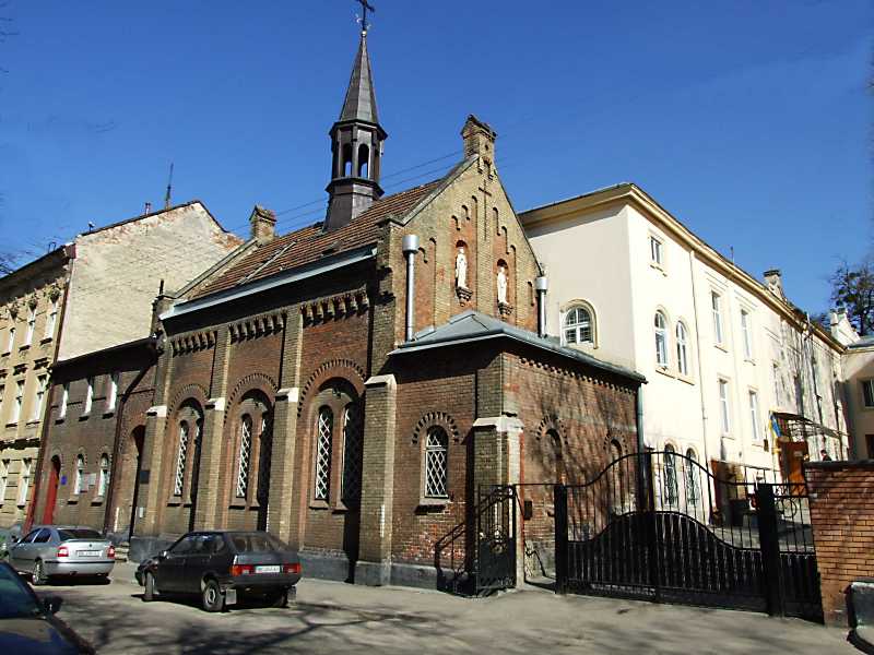 2013 р. Загальний вигляд з позиції А2 Розмір зображення: 800:600 піксел 18 квітня 2013 р. Фото М.І.Жарких. Вкладені елементи Скульптура апостола (?) в ніші Скульптура святого в ніші
