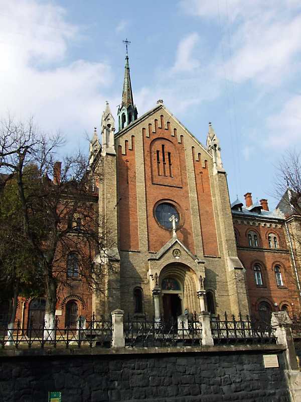За адресою Лисенка, № 43 стоїть храм Івана Золотоуста Православної церкви Київського патріархату, переданий цій конфесії та освячений 1992 року, тут також розмістили навчальний корпус Духовної семінарії. До 1939-го тут був монастир францішканок, потім у приміщеннях храму та суміжних будівель облаштували обласний госпіталь інвалідів Великої Вітчизняної війни, диспансер і відділення клінічної інфекційної лікарні. Поряд із церквою в 1970-х знімали знаменитий художній фільм “Три мушкетери”. В самому храмі в ті часи знищили стінопис і алебастровий вівтар, але, на щастя, збереглися унікальні вітражі, виготовлені в Мюнхені, які 1994 року відреставрували.
