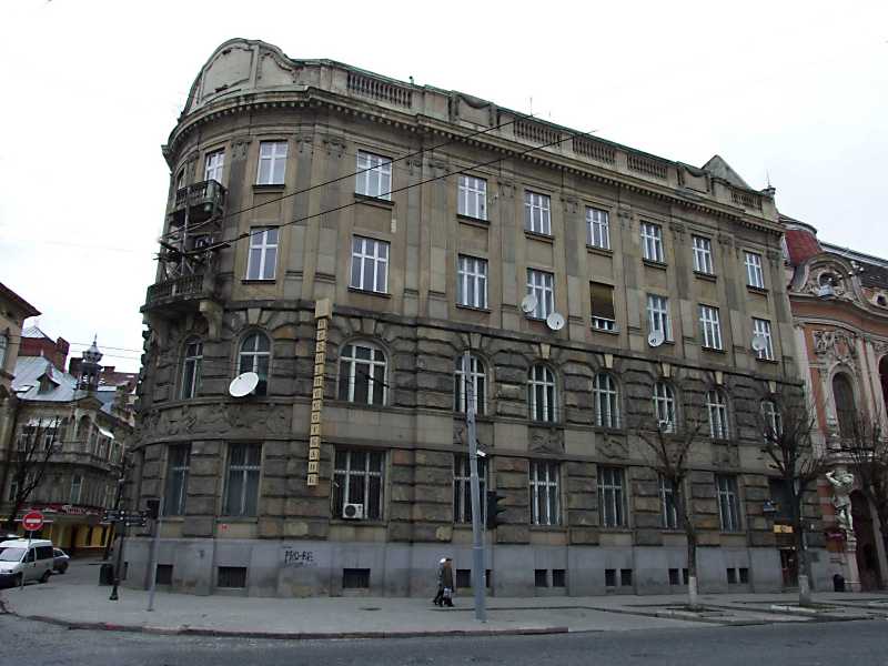 2012 р. Фасад по вул. Листопадового чину Розмір зображення: 800:600 піксел 8 квітня 2012 р. Фото М.І.Жарких. Вкладені елементи Рельєф «Промисловість» Рельєф «Сільське господарство» Рельєф «Техніка» Рельєф «Гірнича справа» Рельєф «Торгівля»