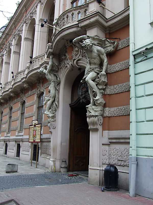 Правий вхід Розмір зображення: 600:800 піксел 8 квітня 2012 р. Фото М.І.Жарких. Вкладені елементи Ліва скульптурна консоль Права скульптурна консоль