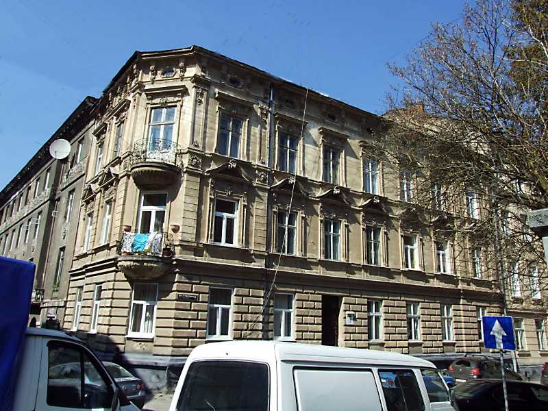 Житловий будинок (№ 12)Розмір зображення: 800:600 піксел Ліворуч – вулиця Стефаника, праворуч – вулиця Мартовича. 16 квітня 2013 р. Фото М.І.Жарких. |