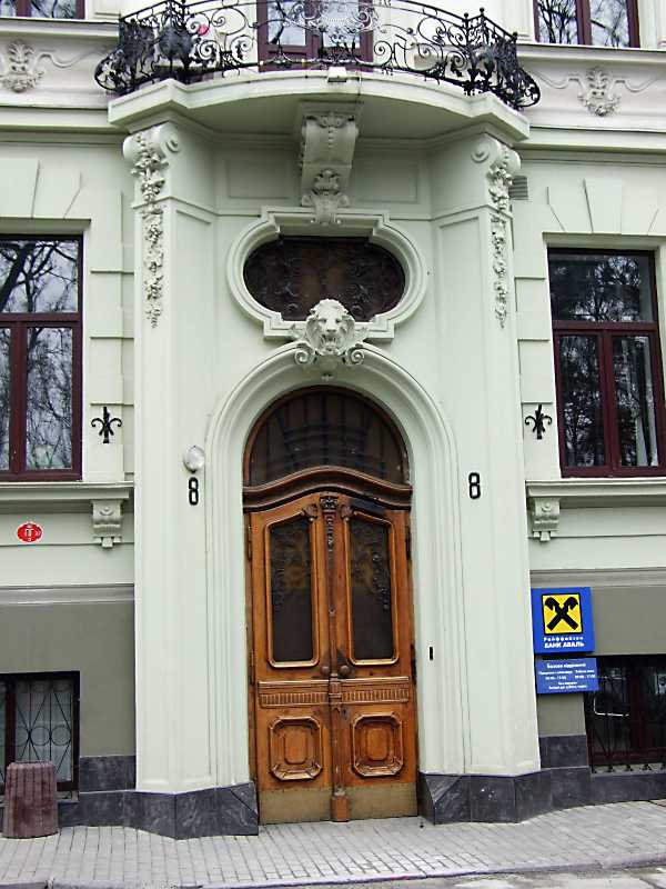 Вхід Розмір зображення: 600:800 піксел 8 квітня 2012 р. Фото М.І.Жарких. Вкладені елементи Маскарон у вигляді голови лева