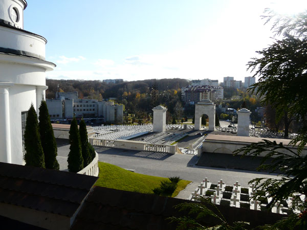 Вид на тріумфальну арку від каплиціРозмір зображення: 600:450 піксел Панорама від Цвинтаря “орлят” в бік району Погулянка Фото: Іван Дивний. 30 жовтня 2008 р.