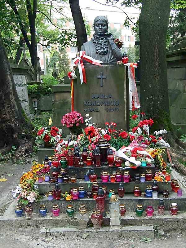 Могила М.КонопніцькоїРозмір зображення: 600:800 піксел 13 вересня 2007 р. Фото М.І.Жарких. Марія Конопніцька (1842 – 1910) – польська поетеса. |