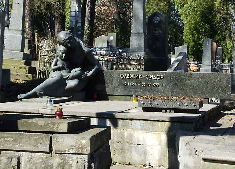 Могила О. Сидора (1965 – 1972) Розмір зображення: 800:576 піксел 19 квітня 2013 р. Фото М.І.Жарких. Вкладені елементи Постать матері з сином