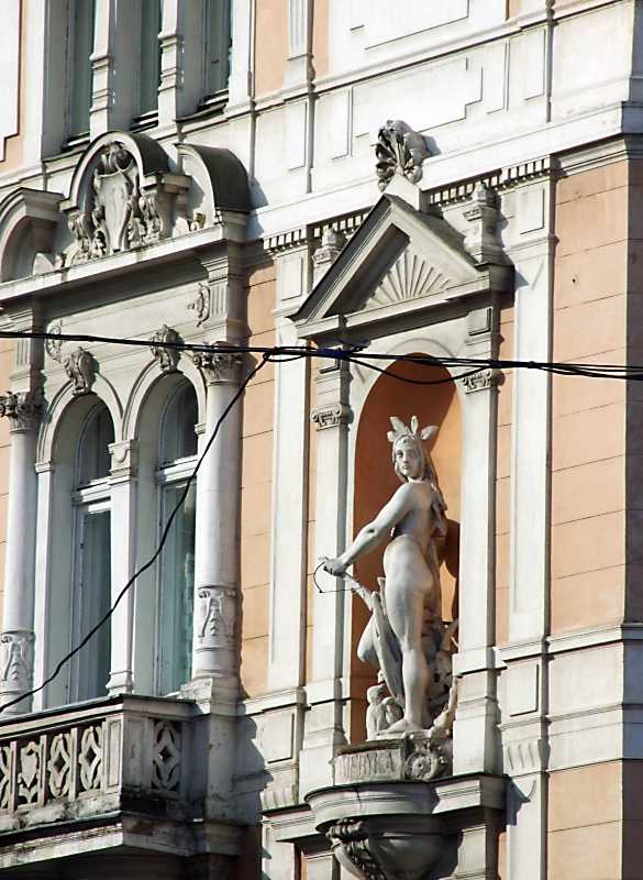 Фрагмент фасаду по просп. Шевченка Розмір зображення: 585:800 піксел 4 квітня 2012 р. Фото М.І.Жарких. Попередня сторінка | Вище | Наступна сторінка