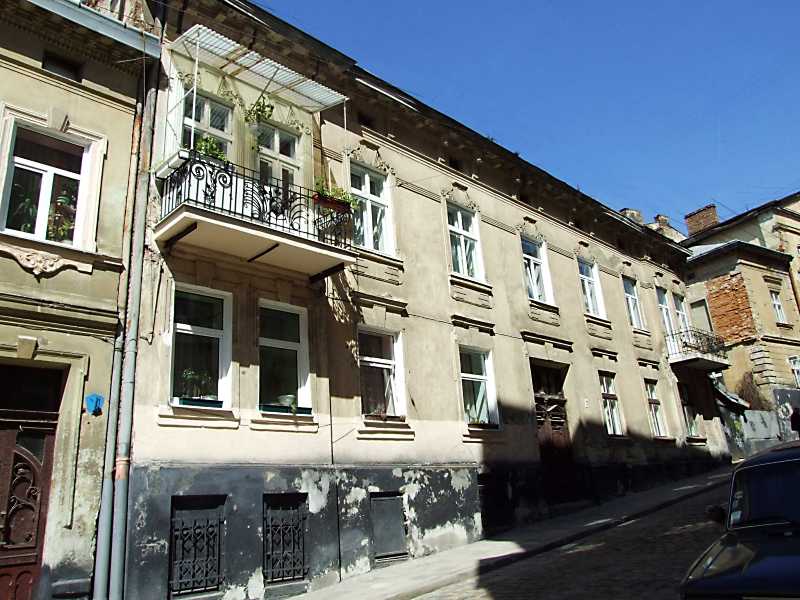 Житловий будинок (№ 7) Розмір зображення: 800:600 піксел 18 квітня 2013 р. Фото М.І.Жарких. Вкладені елементи 2013 р. Сецесійне вікно 2-го поверху