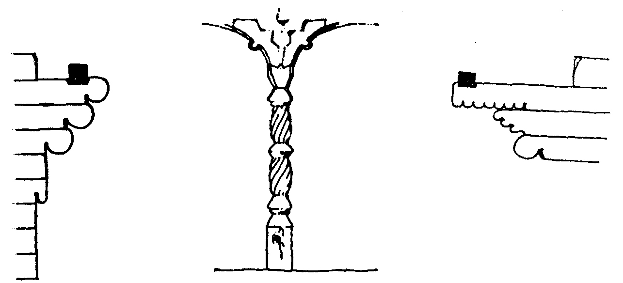 Стовп і кронштейнРозмір зображення: 1285:584 піксел Джерело: Юрченко П.Г. Дерев’яне зодчество України. – К.: 1949 р., с. 108. |