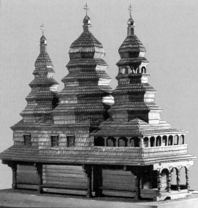 Загальний вигляд моделіРозмір зображення: 762:800 піксел Львів. Церква із с.Кривка. Модель, зроблена Богданом Певним. Джерело: Titus D. Hewryk Masterpieces in wood: houses of worship in Ukraine. – New York, 1987, № 193. |