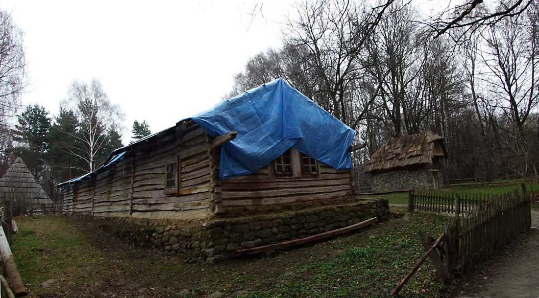 2012 р. Панорама з боку дороги Розмір зображення: 1100:609 піксел 6 квітня 2012 р. Фото М.І.Жарких. Вкладені елементи Хата із с. Зарічеве Фрагмент хати і шопа