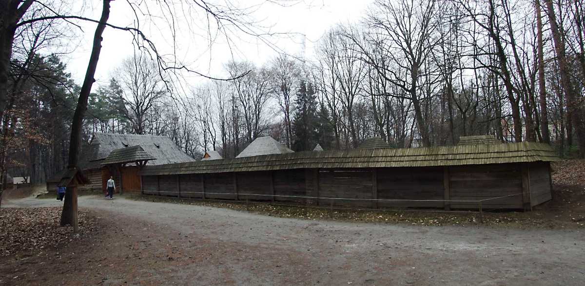 2012 р. Панорама з боку дороги Розмір зображення: 1200:587 піксел 6 квітня 2012 р. Фото М.І.Жарких. Вкладені елементи Хата, брама, паркан (+) Паркан-навіс