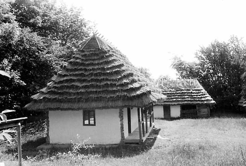 1990 р. Загальний вигляд (хата, хлівець)Розмір зображення: 800:542 піксел 1990 р. 2 червня. Фото М.І.Жарких. Негатека, № 609-19. |