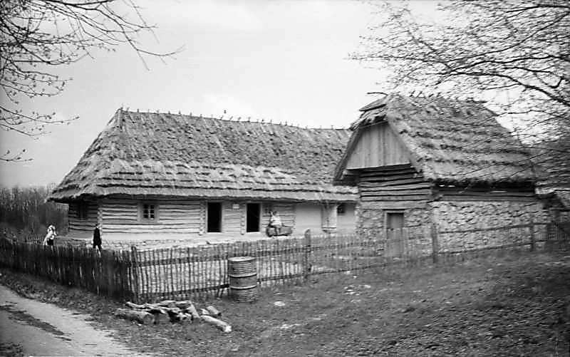 1976 р. Довга хата 1920 р. із с.Зарічево і шпихлір з пивницеюРозмір зображення: 800:501 піксел 1976 р. 25 квітня. Фото М.І.Жарких. Негатека, № A118-27. |