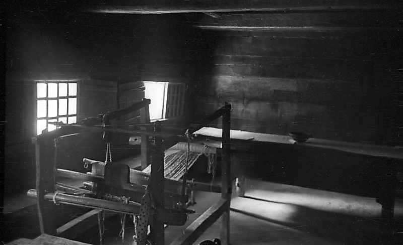 1977 р. Інтер’єр хати з ткацьким верстатомРозмір зображення: 800:488 піксел 1977 р. 24 липня. Фото М.І.Жарких. Негатека, № A345-17. |