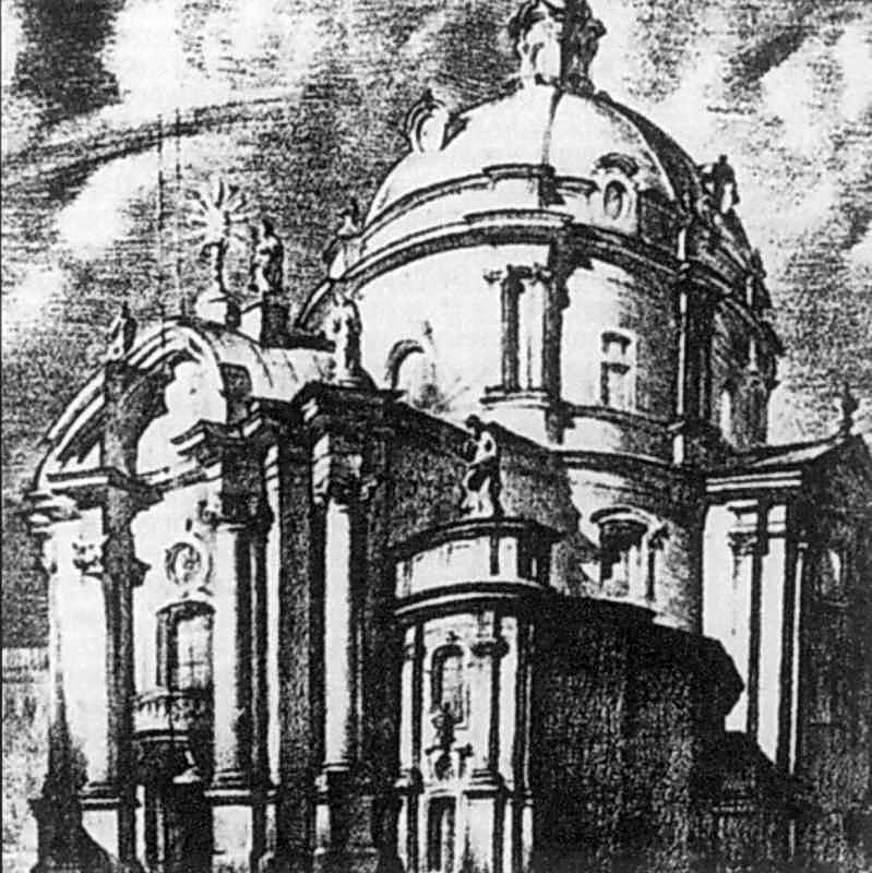 Я.Захватович. Костел домініканів у Львові. Рисунок вуглем. 1928 р. Музей архітектури у Вроцлаві.
