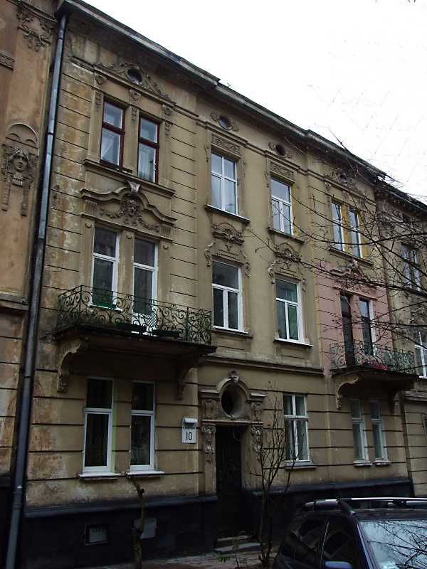 Житловий будинок (№ 10) Розмір зображення: 600:800 піксел 7 квітня 2012 р. Фото М.І.Жарких. Вкладені елементи 2012 р. Балкон 2-го поверху (+) 2012 р. Вхід (+)