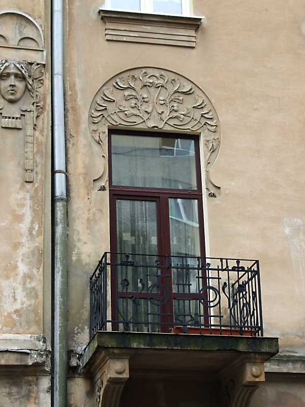 Сецесійне вікно 2-го поверху Розмір зображення: 600:800 піксел 7 квітня 2012 р. Фото М.І.Жарких. Попередня сторінка | Вище | Наступна сторінка