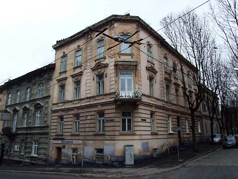 Житловий будинок (№ 1)Розмір зображення: 800:600 піксел 7 квітня 2012 р. Фото М.І.Жарких. Ліворуч – вул. Листопадового чину, праворуч – вул. Новаківського. |