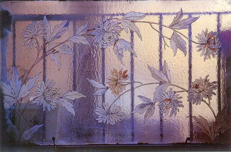 Загальний виглядРозмір зображення: 800:526 піксел Псевдовітраж сходової клітки кам’яниці (вул. Новий Світ, 12). Джерело: Грималюк Р. Вітражі Львова кінця XIX – початку XX століття. – Льв.: 2004 р., с. 139. |