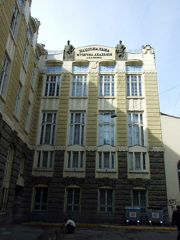 2012 р. Фасад Розмір зображення: 600:800 піксел 4 квітня 2012 р. Фото М.І.Жарких. Вкладені елементи Ліва сецесійна скульптура Права сецесійна скульптура