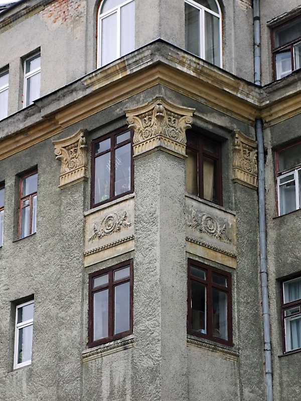 Фрагмент еркера 4-5-го поверхів Розмір зображення: 600:800 піксел 8 квітня 2012 р. Фото М.І.Жарких. Попередня сторінка | Вище | Наступна сторінка