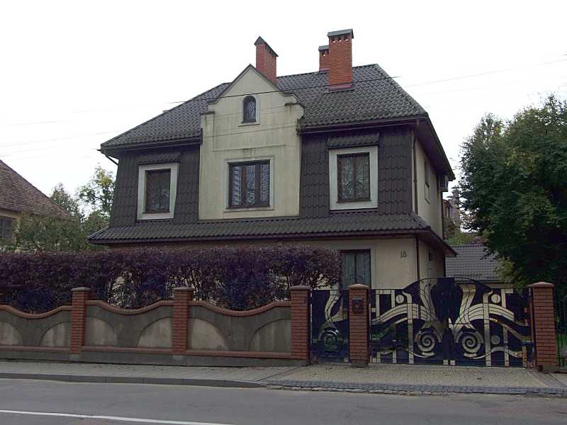 Вілла (№ 18) Розмір зображення: 800:600 піксел Фото М.І.Жарких, 5 жовтня 2019 р. Вкладені елементи 2019 р. Сецесеійна брама 2019 р. Фронтальний вигляд 2019 р. Загальний вигляд