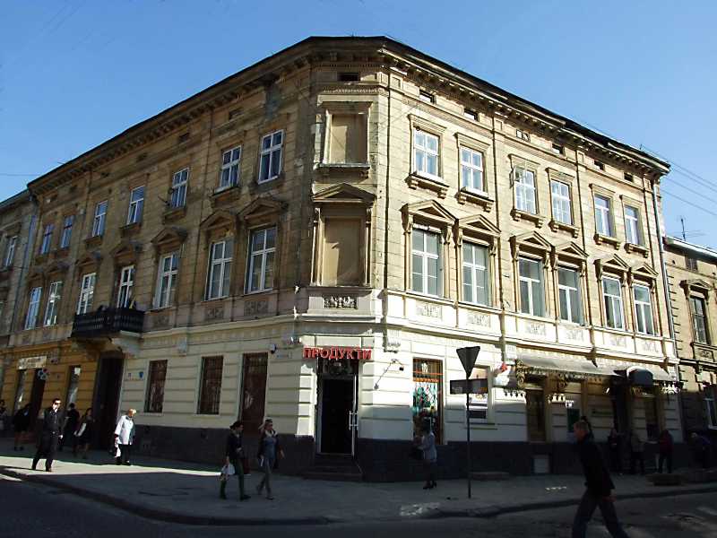2013 р. Загальний виглядРозмір зображення: 800:600 піксел Ліворуч – вулиця Пекарська, праворуч – вулиця Туган-Барановського. 18 квітня 2013 р. Фото М.І.Жарких. |