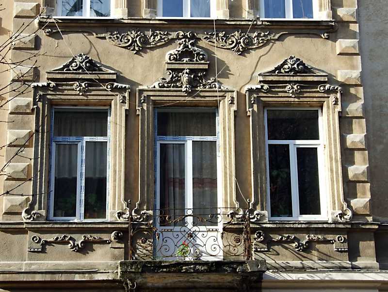Вікна 2-го поверху Розмір зображення: 800:602 піксел 16 квітня 2013 р. Фото М.І.Жарких. Вкладені елементи Рельєфний фронтон над дверима балкону