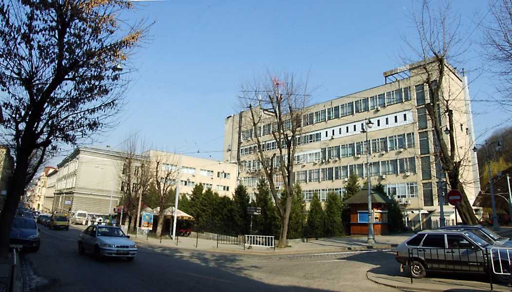 2013 р. Панорама булинків № 41, 43 Розмір зображення: 1051:600 піксел 19 квітня 2013 р. Фото М.І.Жарких. Вкладені елементи Будинок 41 і фрагмент телефонної станції