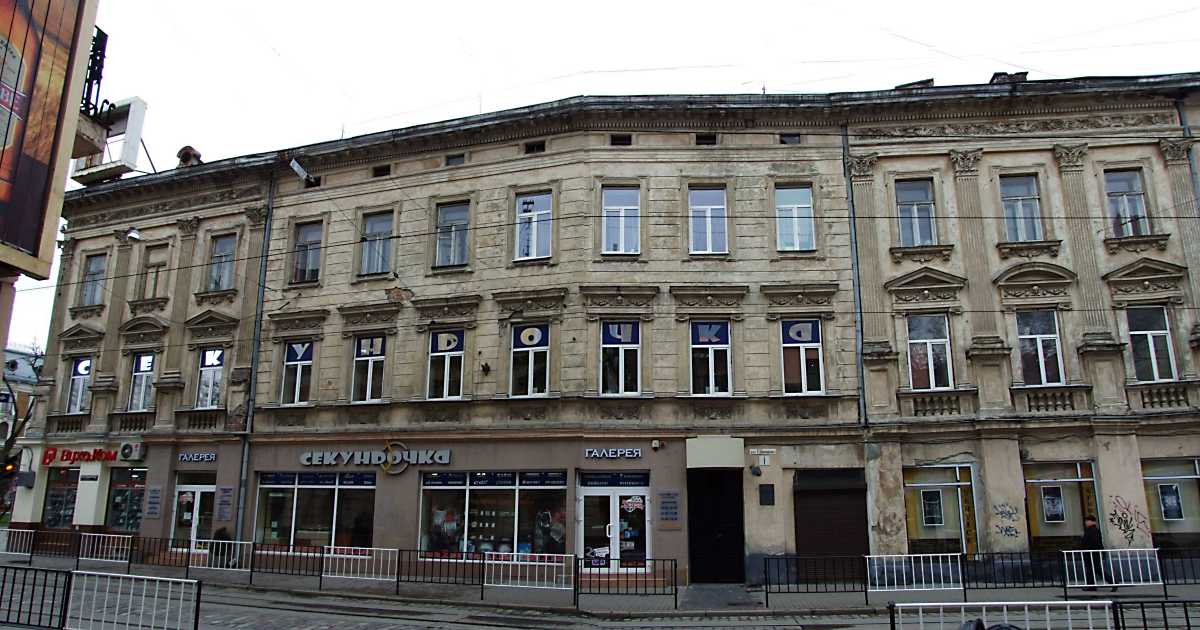 У будинку № 1 за польських часів містилося Товариство торговельних агентів, магазин жіночого одягу й крамниця дитячого одягу Maison-Chic Белля, у 1950-х роках тут був пункт скупки ювелірних виробів і ательє мод 1-го розряду, яке проіснувало до 1980-х років. Від повоєнних часів і донині тут майстерня з ремонту годинників (нині має назву “Хронограф”). У цьому будинку тепер також міститься салон-магазин годинників “Секундочка” й агентство нерухомості “Ваш комфорт”.