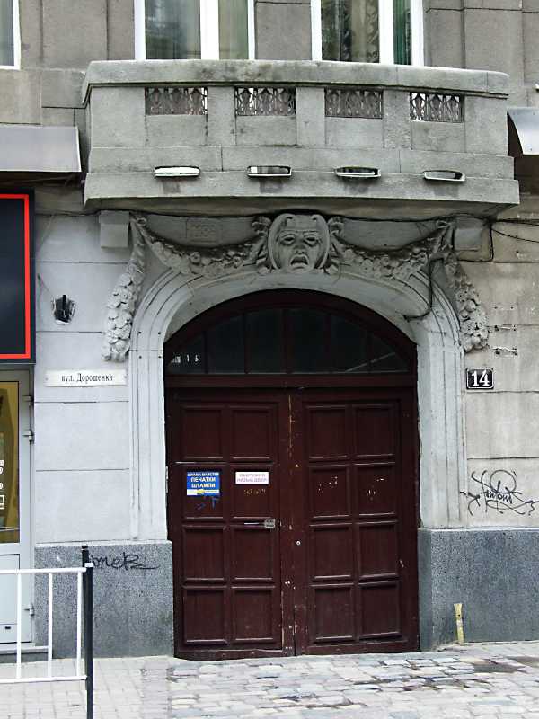 Сецесійний вхід Розмір зображення: 600:800 піксел 8 квітня 2012 р. Фото М.І.Жарких. Вкладені елементи Сецесійний маскарон