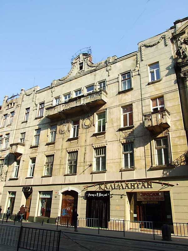 2013 р. Загальний вигляд Розмір зображення: 600:800 піксел 19 квітня 2013 р. Фото М.І.Жарких. Вкладені елементи Сецесійний рельєф 3-го поверху