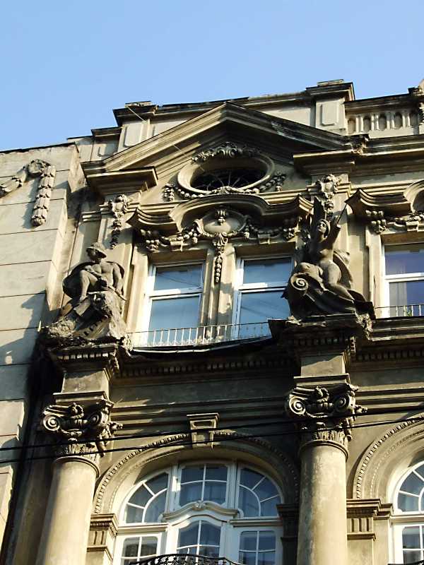 Фрагмент фасаду 1 Розмір зображення: 600:800 піксел 19 квітня 2013 р. Фото М.І.Жарких. Вкладені елементи Фігура 1 (війна) Фігура 2 (мир) Капітель пілястри